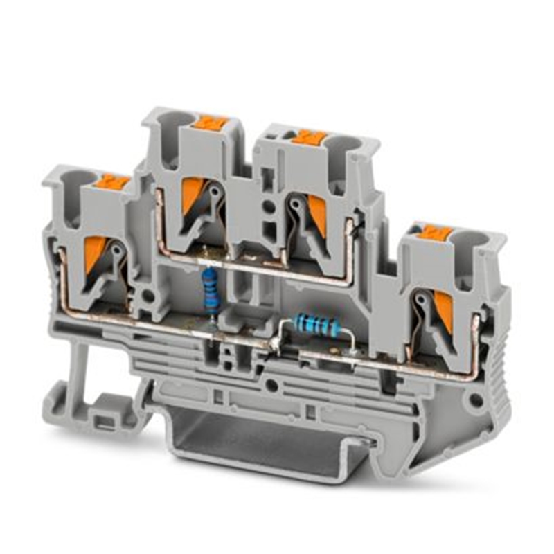 Bloc de jonction à 2 étages, Push-in, sections : 0,14 mm² - 4 mm², largeur : 5,2 mm, couleur : gris, type de montage : NS 35/7,5, NS 35/15