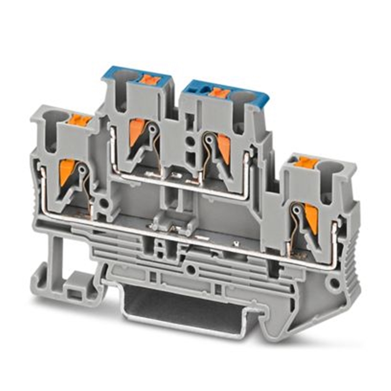 Bloc de jonction à 2 étages, sections : 0,14 mm² - 4 mm², Push-in, largeur : 5,2 mm, couleur : gris, type de montage : NS 35/7,5, NS 35/15