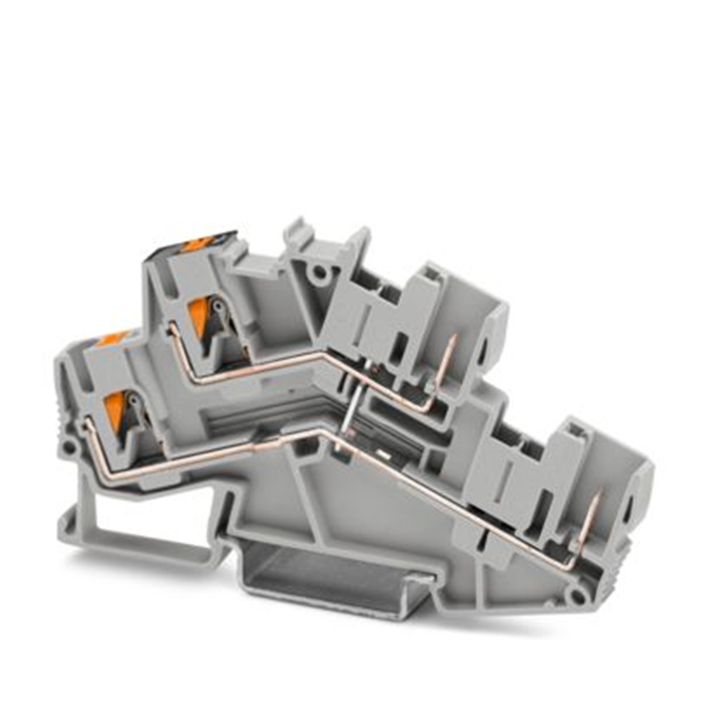 Bloc de jonction à 2 étages, avec connecteur de potentiel, Push-in, nombre de connexions : 4, sections : 0,14 mm² - 4 mm², largeur : 5,2 mm, couleur : gris, type de montage : NS 35/7,5, NS 35/15