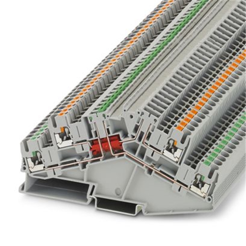 Bloc de jonction de sectionnement 2 étages, un couteau de sectionnement et un point de sectionnement, Push-in, sections : 0,14 mm² - 4 mm², I nom. : 16 A, U nom. : 400 V, longueur : 127,5 mm, largeur : 5,2 mm, couleur : gris