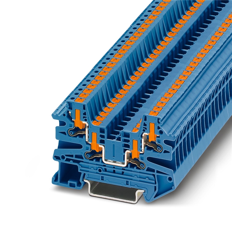 Bloc de jonction simple, tension nominale: 800 V, intensité nominale: 24 A, nombre de connexions: 4, type de raccordement: Raccordement Push-in, Section de référence: 2,5 mm², section : 0,14 mm² - 4 mm², type de montage: NS 35/7,5, NS 35/15, coloris: bleu