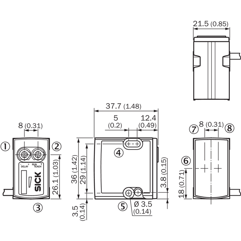 • Dimensions (l x H x P): 21,5 mm x 36 mm x 37,7 mm