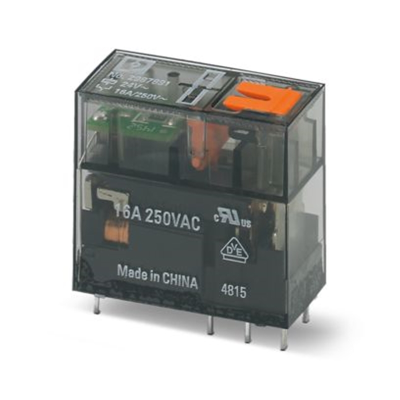 Relais miniature enfichable, avec contact de puissance pour intensité permanente élevée, 1 contact inverseur, touche de test, affichage mécanique de position, LED intégrée, tension d'entrée 24 V AC
