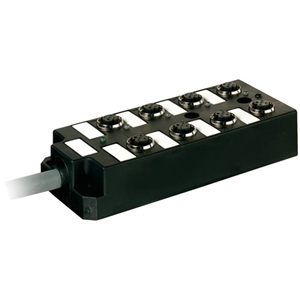 Répartiteur étanche ; Type: 8xM12, 5 pôles, câble préconfectionné, avec LED pour signaux PNP logiques; Raccordement capteurs/actionneurs: 8 voies M12 femelle, 5 pôles, codé-A; Raccordement automate: Extrémité de câble libre; Câble: 15.0 m, PUR/PVC (UL/CSA), 19 fils (16x 0.34 + 3x 0.75 mm²), gris;...