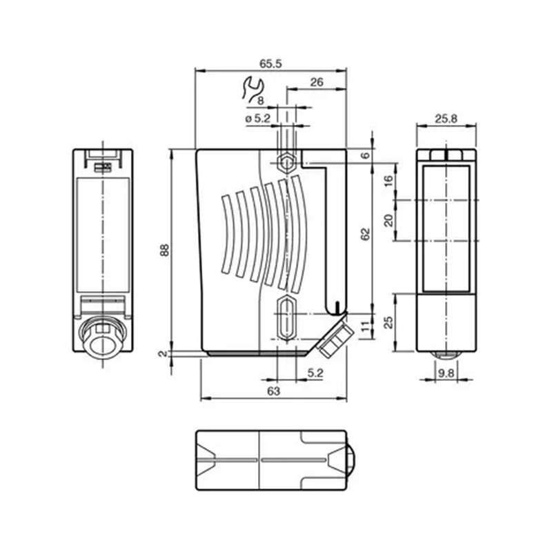 Capteur photoélectrique robuste et compact pour la protection monofaisceau de portails., Insensible à la lumière ambiante, même provenant de lampes économes en énergie, Inviolable, sans commandes de fonctionnement, Version pour tensions universelles, Sortie relais, Emetteur de lumière: LED, Type de lumière: rouge, lumière modulée , 640 nm, Tension d'emploi: 24 ... 230 V C.A./C.C., Mode de commutation: commutation "foncé", Sortie signal: sortie relais, 1 contact inverseur