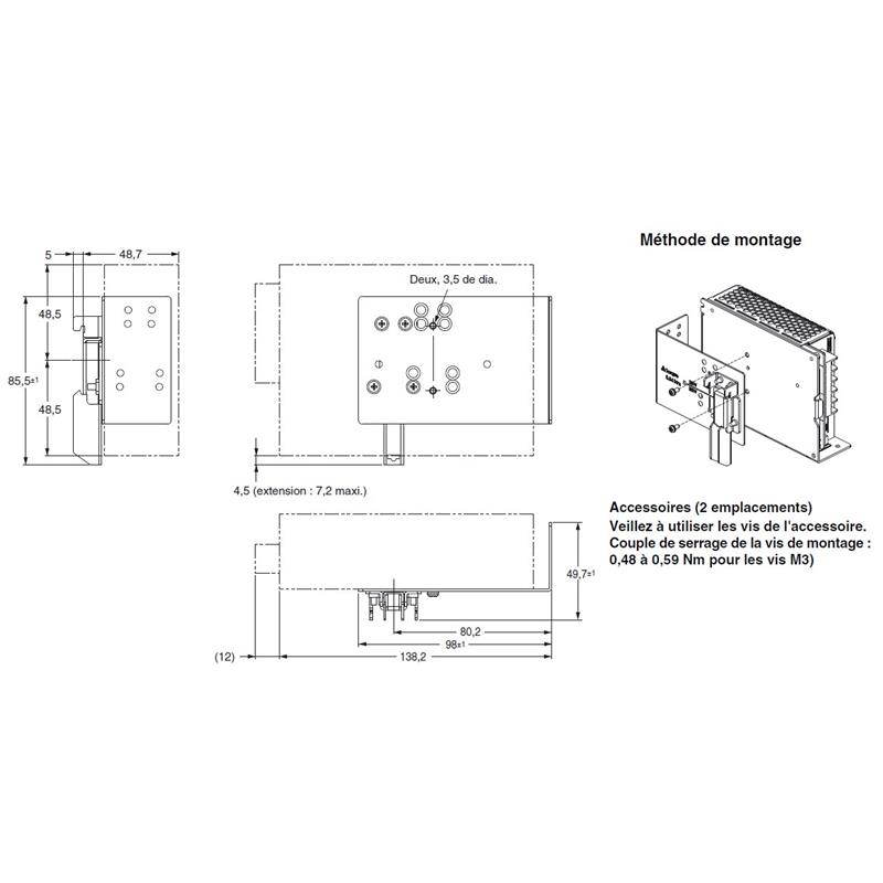 Support de montage, fixation intérieure sur rail DIN pour alimentation S8FS et S8JC, adapté aux alimentation d'une puissance nominale de 50 W