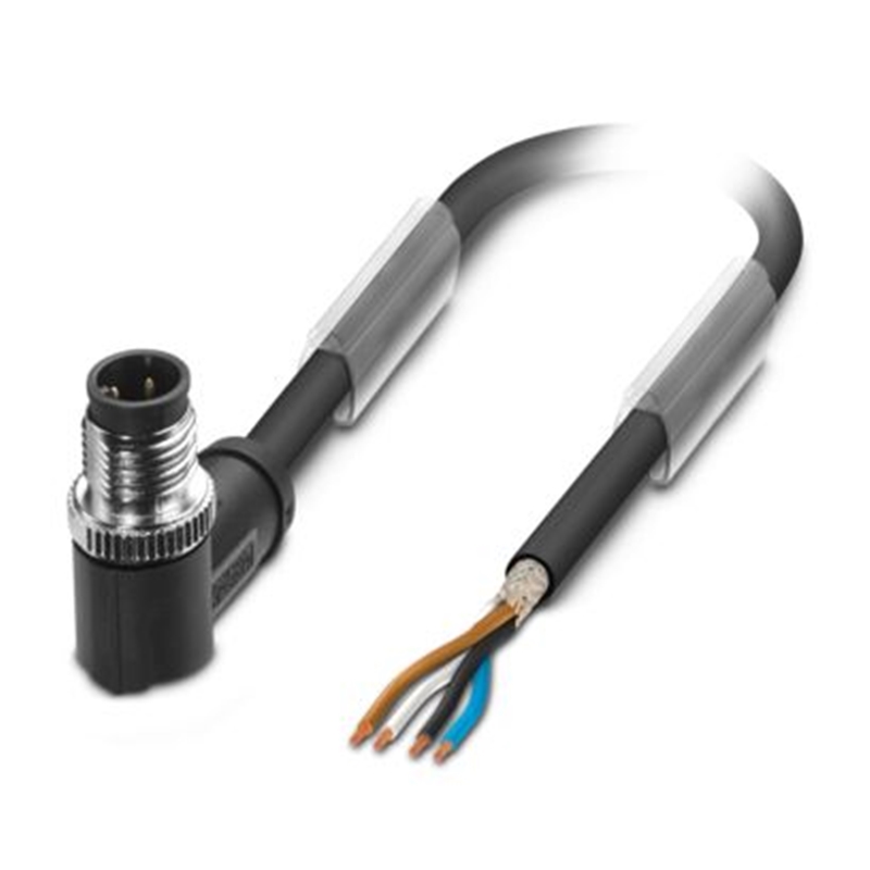 Câble pour capteurs/actionneurs, 4-pôles, PUR exempt d'halogène, gris-noir RAL 7021, blindé (Advanced Shielding Technology), connecteur mâle coudé M12, codage: A, sur extrémité libre, longueur de câble: 5 m