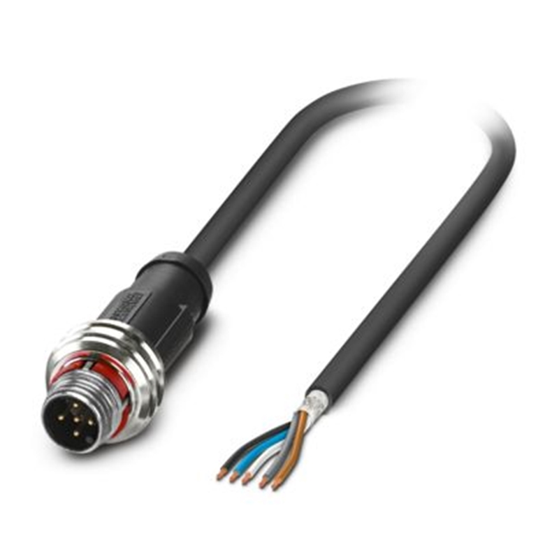 Câble pour capteurs/actionneurs, 5-pôles, PUR exempt d'halogène, gris-noir RAL 7021, blindé (Advanced Shielding Technology), connecteur mâle droit M12, codage: A Push-Pull, câblé avec déconnecté, sur extrémité libre, longueur de câble: 5 m