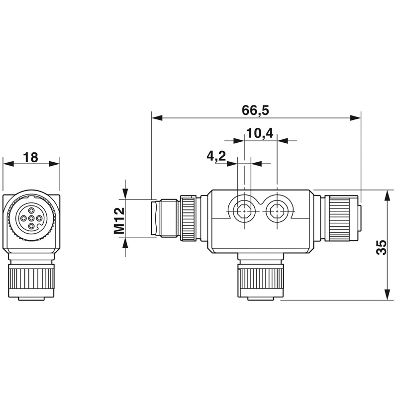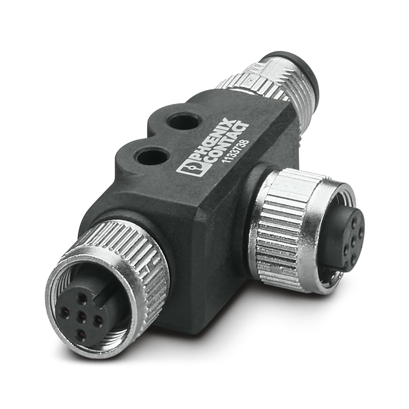 Répartiteur en T, 5-pôles, non blindé, Connecteur femelle droit M12, codage: A, sur Connecteur femelle droit M12, codage: A et connecteur mâle droit M12, codage: A
