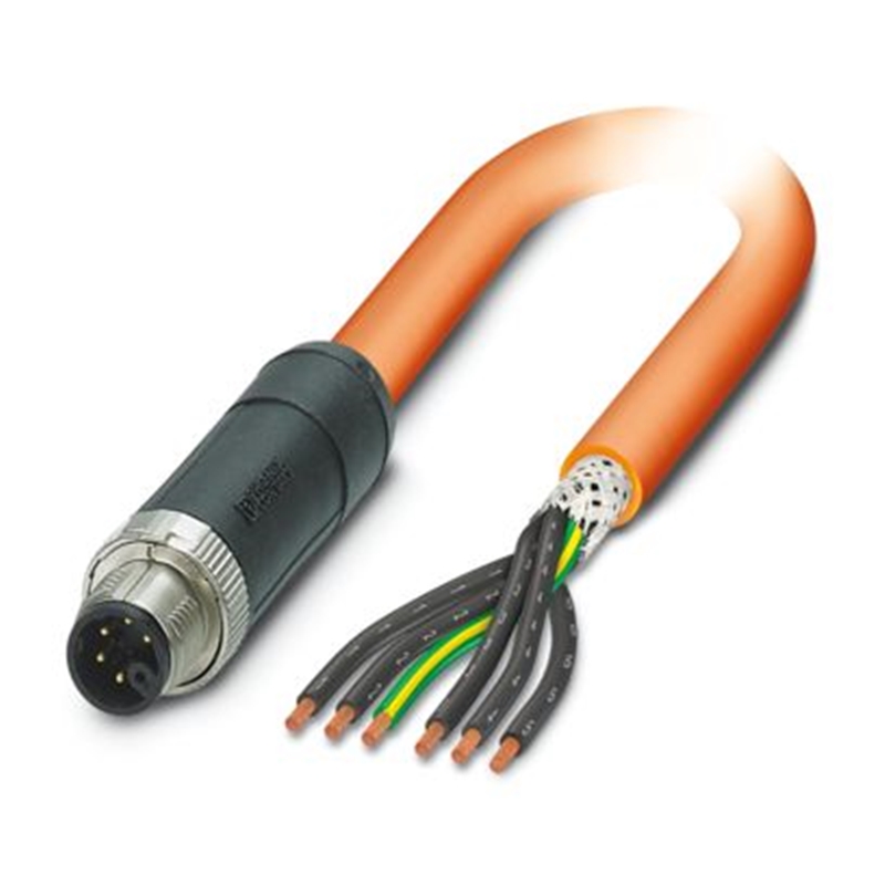 Câble d'alimentation, 6-pôles, PVC, orange RAL 2003, blindé (Advanced Shielding Technology), connecteur mâle droit M12, codage: M, sur extrémité libre, longueur de câble: 1,5 m, pour courant alternatif jusqu'à 8 A/690 V