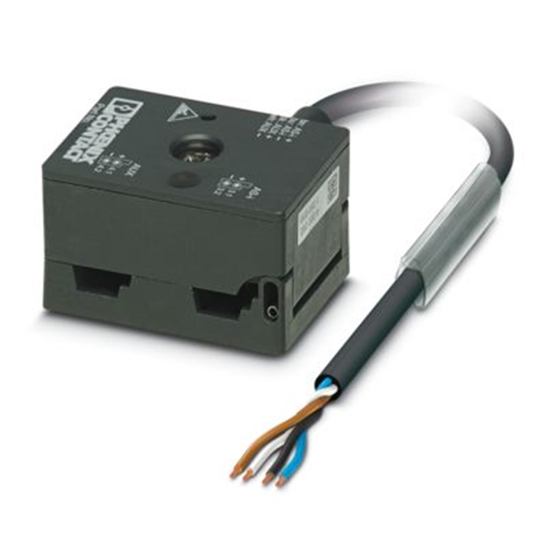 Répartiteur AS-i avec indice de protection élevé, pour la dérivation de deux câbles plats sur un câble rond PUR de 2,0 m avec extrémité libre