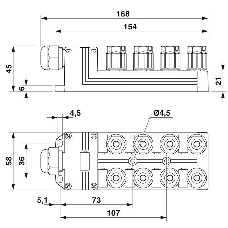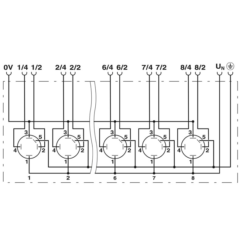 Répartiteur capt./actionneur QUICKON 0,14 à 0,75 mm², 8 prises, 5P, affectat. prise: double, pas affichage, Universel; racc. câble multicond.: à visser 180°, non blindé, Si raccordement de 5 conducteurs, raccorder au max 0,5 mm²