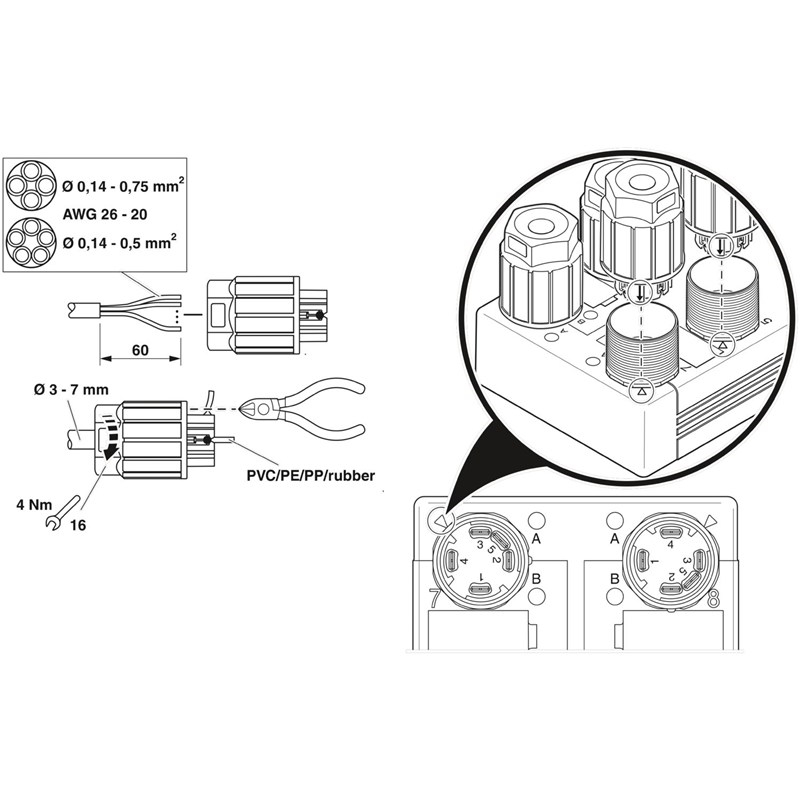 Boîtier répartiteur, type de raccordement: QUICKON, 0,14 mm² ... 0,5 mm², nombre de prises: 8, nombre de pôles: 5, affectation des prises: double, affichage d'état: non, Universel; racc. câble multicond.: Raccordement vissé enfichable 180°, blindage: non, Lors du raccordement de 5 conducteurs, possibilité de raccorder au maximum 0,5 mm²