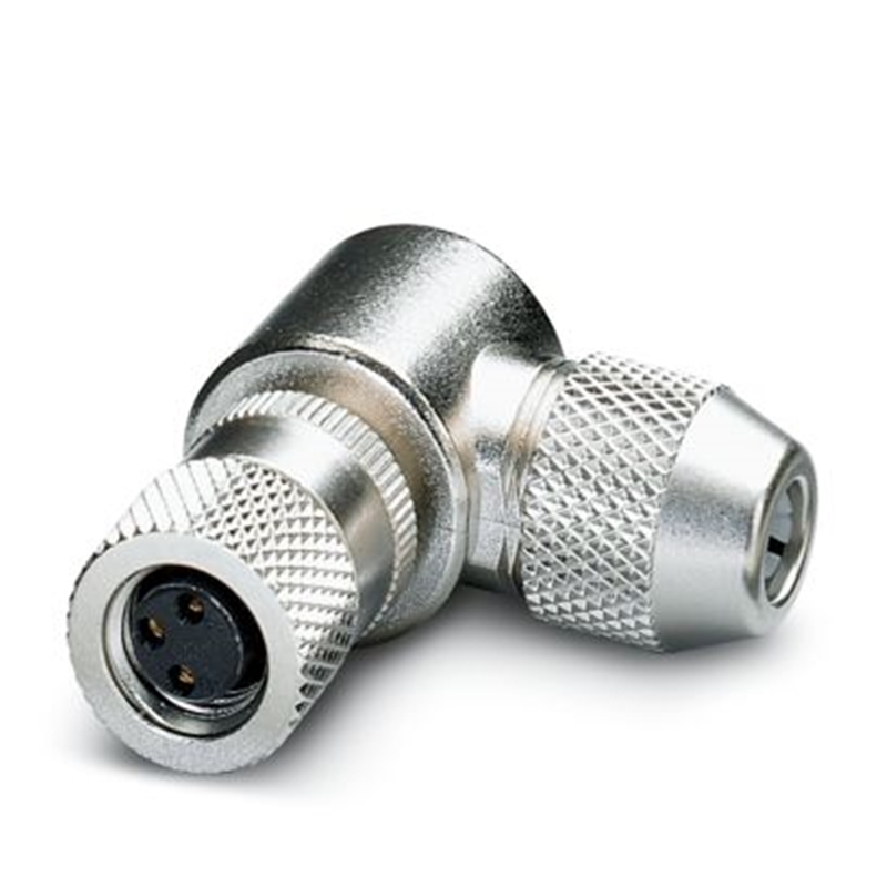 Connecteur, Universel, 3-pôles, blindé, connecteur femelle coudé M8, codage: A, Raccordement soudé, matériau de la molette: Laiton, nickelé, diamètre extérieur du câble 3,5 mm ... 5 mm
