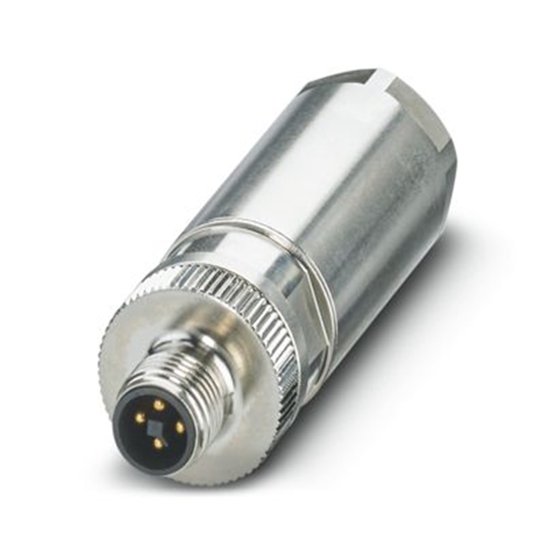 Connecteur de puissance, Puissance, 4-pôles, blindé, connecteur mâle droit M12, codage: T, Raccordement à ressort Push-Lock, matériau de la molette: Laiton, nickelé, diamètre extérieur du câble 6 mm ... 11 mm, Contact 4 à fermeture