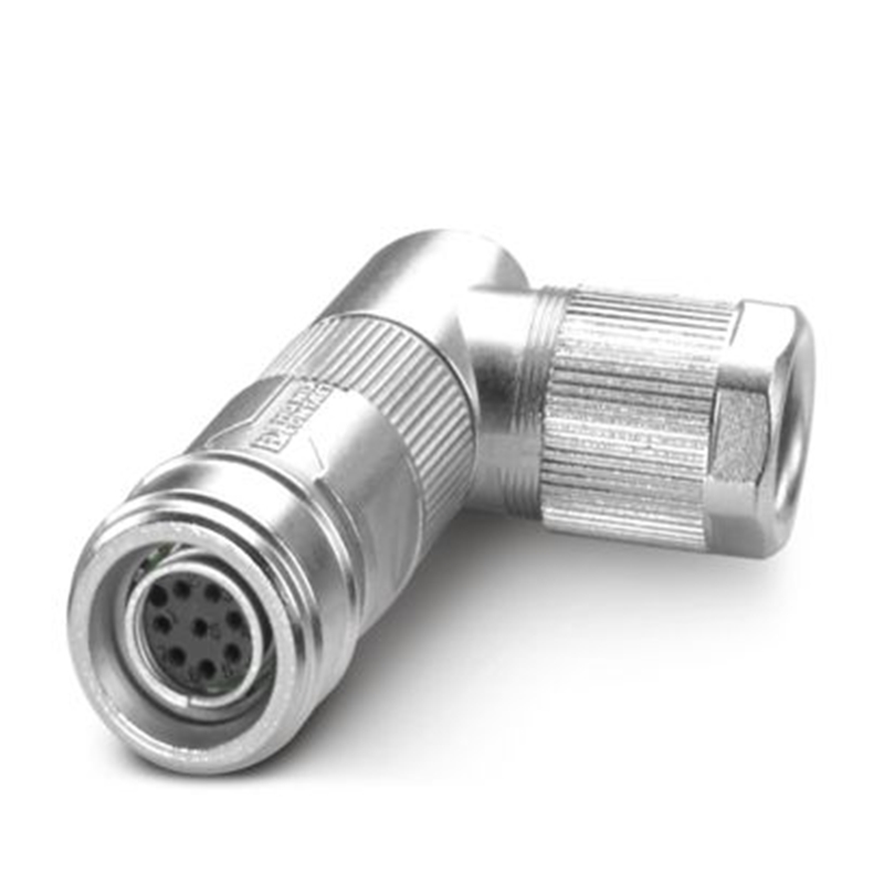 Connecteur, Universel, 8-pôles, blindé, connecteur femelle coudé M12 Push-Pull, codage A, Raccordement à sertir, matériau de la molette: Zinc moulé sous pression, nickelé, diam. extérieur du câble 4,5 mm ... 7,5 mm, sans contacts à sertir