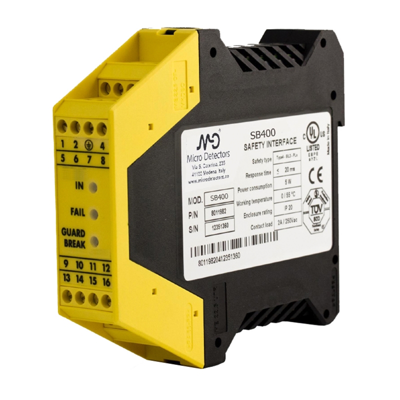 • Type de sortie: 2 x relais NO (sortie de sécurité OSSD) 1 x NO, 100 mA, 24 V (état du système)