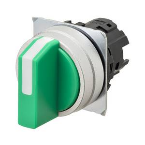 Sélecteur A22NZ Ø22mm, 3 positions, Lumineux, Manuel, Couleur Vert, Colerette aluminium brossé