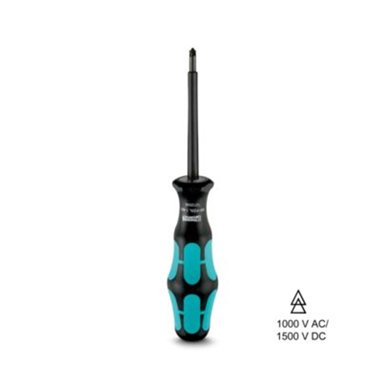 Tournevis, plus-moins PZ/tête fendue, isolé selon VDE, taille : PZ 1 x 80, manche à deux composants, antidérapant