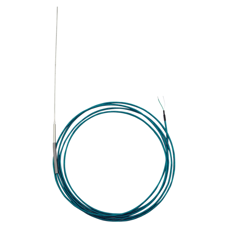 Sonde Filaire TcK Cl.1 Chemisé SFKI-SVB-3-1,5-100. Plongeur : Ø1,5 - Lg. 100mm. Sortie 2 fils sur câble soie de verre blindée - 3 mètres. Plage de température : Chemisé : -200 à +1150°C(câble et pot de jonction :  -50°C à +400°C)