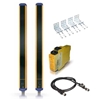 Barrière immatérielle de sécurité, Émetteur/récepteur, Type 4, Résolution: 30 mm (protection des mains), Hauteur du champ de protection: 1350 mm, Temps de réponse: 19 ms, Portée: 0,2...19 m, Nombre de faisceaux: 72, Sorties: 2 x OSSD PNP, PL/catégorie (ISO13849-1): PL e/cat. 4, SIL (IEC 61508): SIL 3, Affichage: statut/diagnostic, Fonctions: remise à zéro automatique, Tension d'alimentation: 24 V DC (+/- 20 %), Courant de sortie max: 0,5 A, Raccordement: fiche M12 (récepteur 4 pôles/émetteur 4 pôles), Accessoires de montage inclus