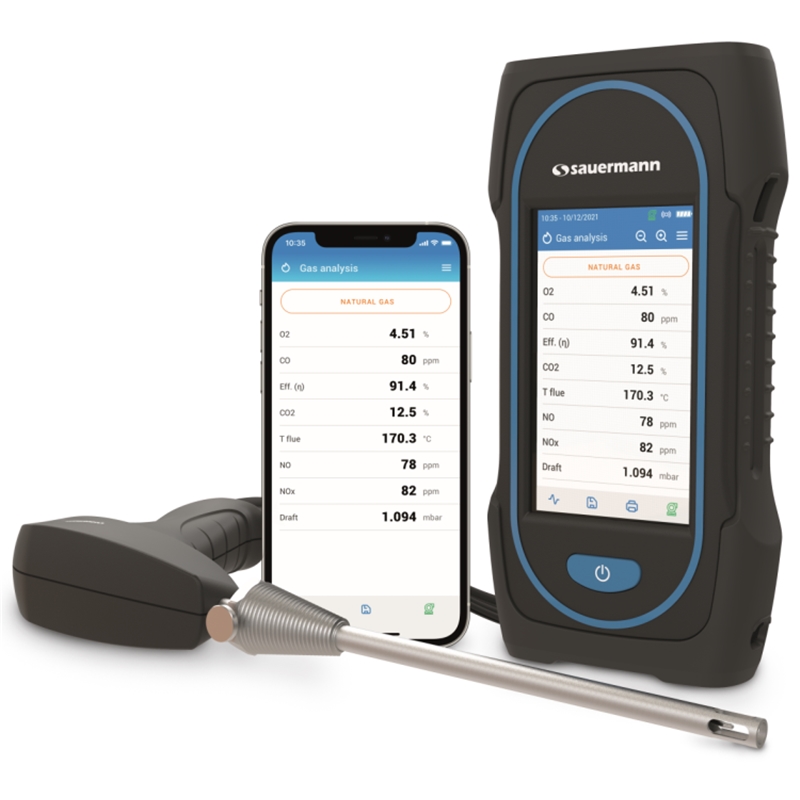 Analyseur de combustion Si-CA 130 Kit 3BS avec écran tactile, 3 cellules électrochimiques (O2, CO, NO), protection des cellules par arrêt de la pompe, sonde de prélèvement 300 mm avec tuyau de 3 m et pot à condensat avec filtre, coque de protection aimantée, sacoche de transport, chargeur d'alimentation, câble USB, guide de démarrage rapide et certificat d’étalonnage. Communication sans fil pour application mobile et imprimante déportée (en option). Garantie 2 ans.