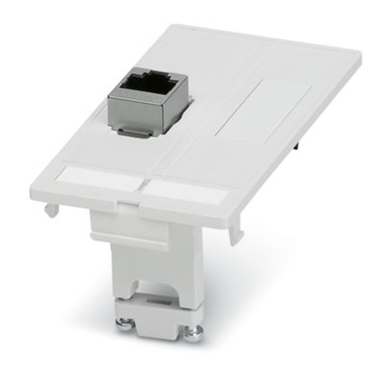 Plaque frontale pour données avec éléments de contact, plastique, 1×RJ45, 8 pôles, métal, CAT5e (connecteur femelle/connecteur femelle), 1 cache aveugle D-SUB 9