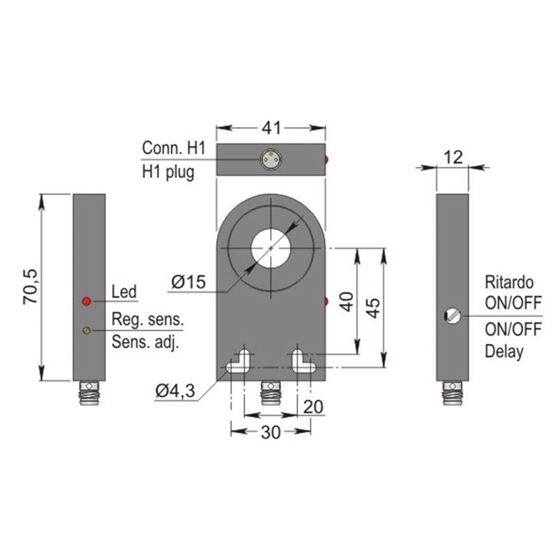 Détecteur inductif annulaire; Format: Annulaire; Version électrique: 4 fils DC; Diamètre de passage: Ø= 15 mm; Objet minimum détectable: Ø 1.2 x 2 mm; Sortie de commutation: PNP; Type de commutation: Contact à fermeture (NO); Interface de communication: -; Raccordement: Connecteur mâle M12 4 pôles; Tension d'alimentation: 10-30Vdc; Dimensions: 41 x 70.5 x 12 mm; Materiau du boîtier: Plastique; Température de fonctionnement: -20 ... +60 °C