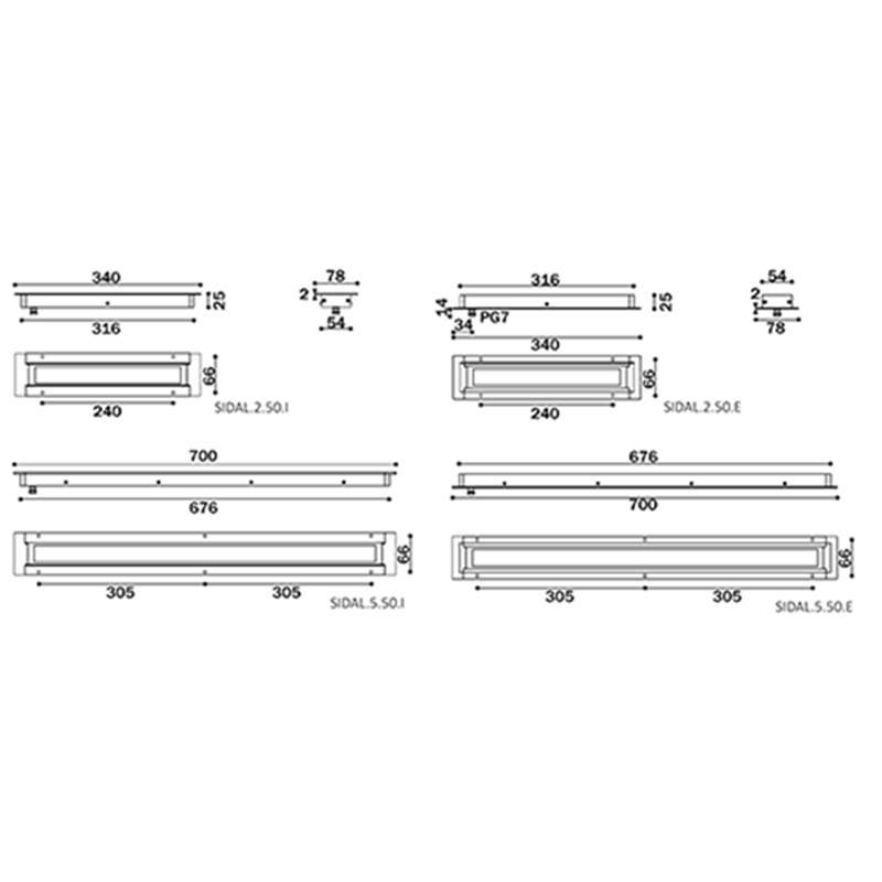 Lampe slim externe IP67 LED 13W 24VDC 54x316mm