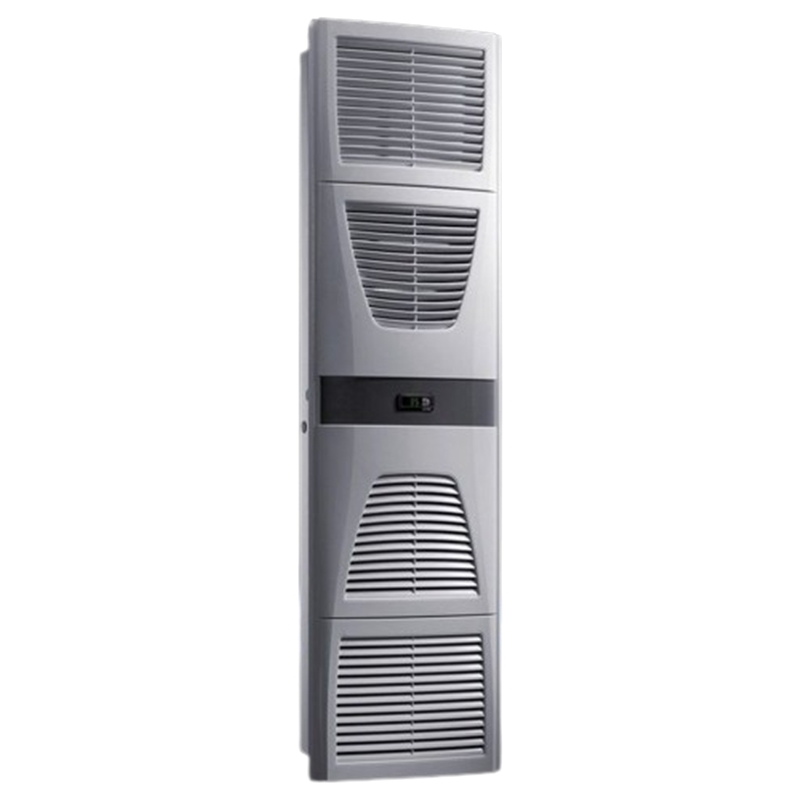 Climatiseur latéral TopTherm Blue e; Modèle: Montage latéral; Puissance frigorifique en régime permanent: 1,60 KW; Débit d'air: 910 m³/h; Plage de réglage: 20 °C...50 °C; Régulation de la température: Régulateur e-Confort (réglage usine +35 °C); Fluide frigorigène: R134a; Tension nominale: 230 V, 1~, 50 Hz/60 Hz; Largeur: 435 mm; Hauteur: 1 590 mm; Profondeur: 205 mm; Matériau: Tôle d'acier; Couleur: RAL 7035; Indice de protection: Circuit externe IP 34, Circuit interne IP 54; Température de fonctionnement: 10 °C...55 °C; Poids: 45 kg; Unité d'emballage: 1 p.; Composition de la livraison:- Condenseur avec revêtement RiNano hydrophobe.- Prêt à être raccordé (par bornier de raccordement enfichable)- Gabarit de perçage- Matériel de fixation