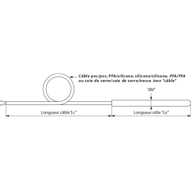 Sonde Pt100x1 3 fils Ø6x0,4mm lg150mm, câble 3m PFA/silicone