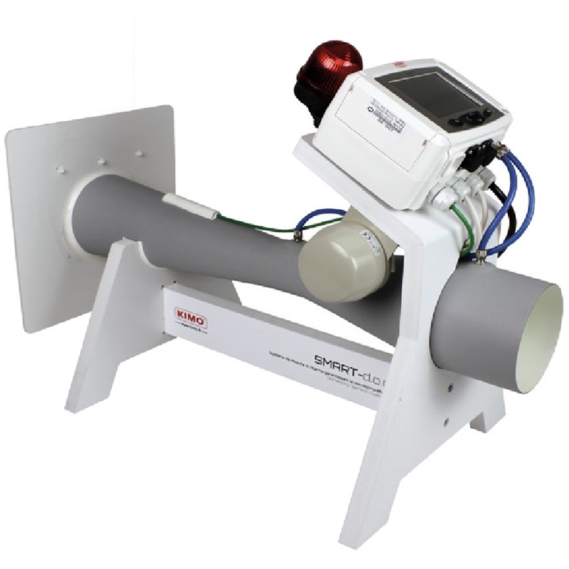 Capteur de vitesse type SMARTDOG. Gamme de vitesse: 0.8 à 10 m/s. Diamètre de raccordement 100 mm. Alimentation: 230V. Possibilité de configurer 2 seuils d'alarmes (vitesse max et vitesse min) grâce à deux relais. Alarmes visuelles et sonores déportées. Organe de mesure: tube de Venturi en fibre de verre associé à un capteur de pression différentielle type C310-HO, SPI2-1000 et C4R avec fonction SQR/3 pour réaliser la mesure de débit. Mesure de la température du flux par thermocouple K pour réaliser la compensation en température. Affichage de la vitesse et de la pression différentielle. Le capteur de pression différentielle C310-HO est livré ajusté et étalonné. En option : voyant et buzzer 92 dB déporté avec câble longueur 10 m et équerre de fixation.