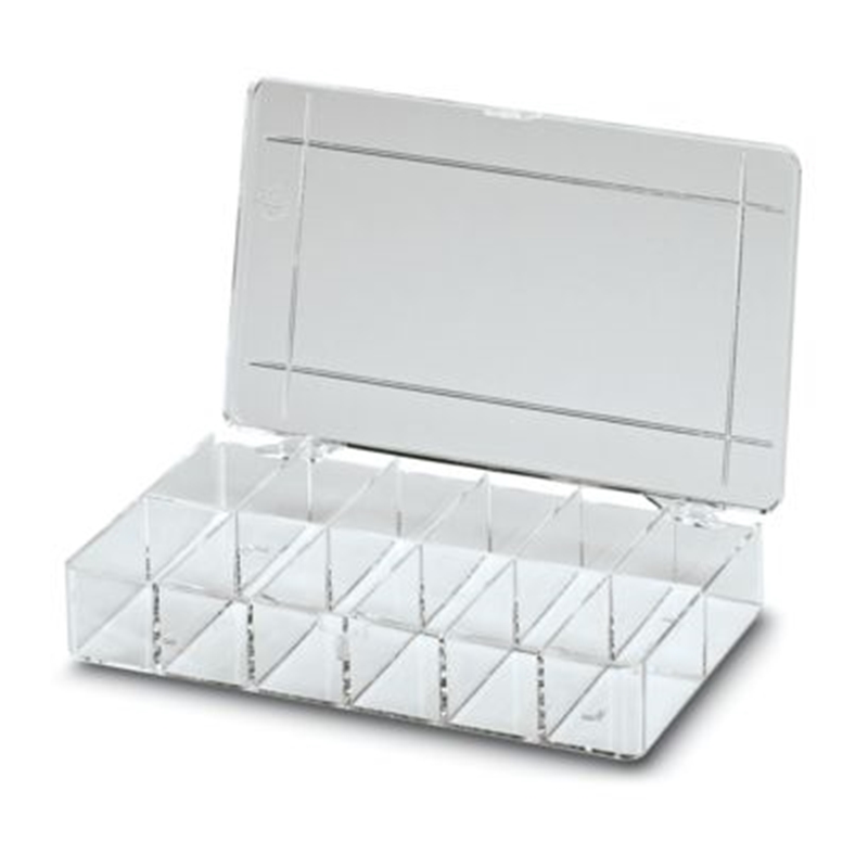 Coffret de rangement, dimensions : 210 x 105 x 36 mm, 12 casiers, taille casier : 57 x 32 mm