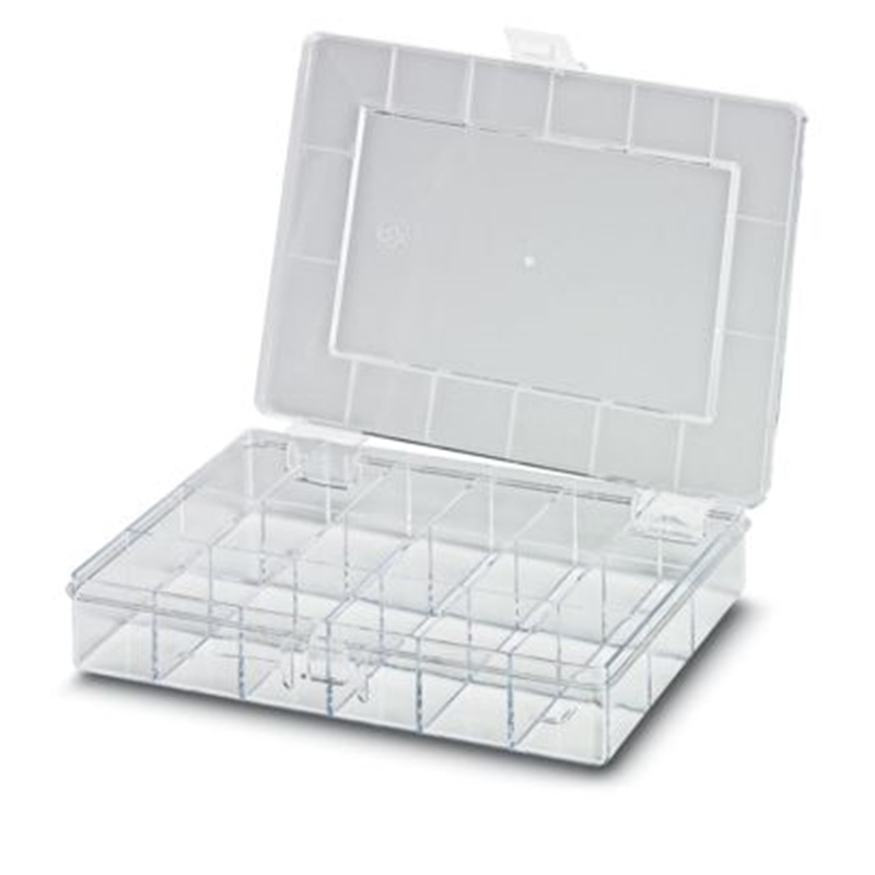Coffret de rangement, dimensions : 250 x 170 x 46 mm, 18 casiers, taille casier 1 : 48 x 39 mm, taille casier 2 : 66 x 39 mm