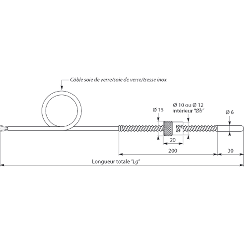 • Gaine de protection : acier inox 316 L - Ø 6 x 0,4 mm, longueur 30 mm