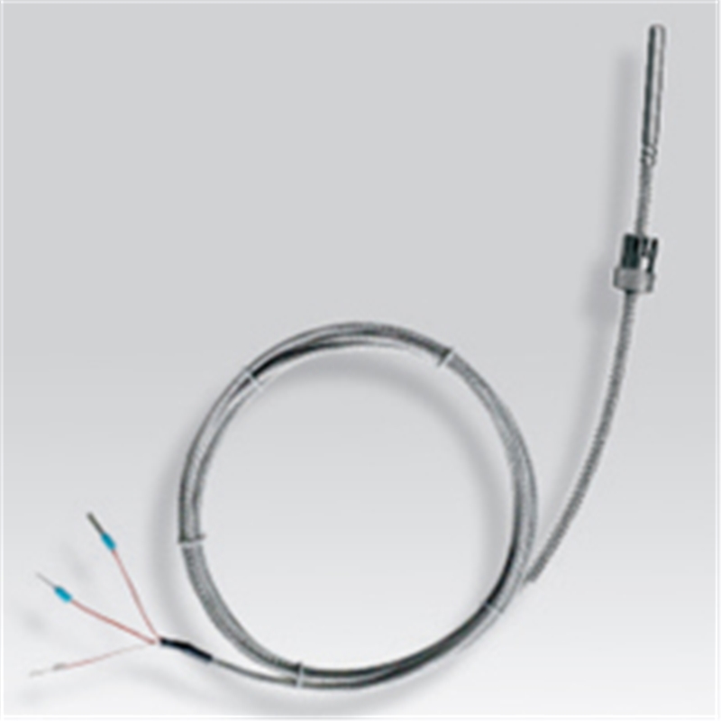 Sonde Pt 100 à baïonnette pour l'industrie plastique; Gaine de protection: acier inox 316 L - Ø 6 x 0,4 mm, longueur 30 mm; Sonde: Pt 100 céramique CEI 60751 classe A, simple ou double enroulement en montage 3 fils; Ressort de compression: Ø 8 mm, longueur 200 mm; Raccordement: baïonnette Ø 15 mm intérieur en laiton nickelé, réglage possible de la baïonnette sur 200 mm; Câble de raccordement: soie de verre/soie de verre/tresse inox, longueur 2 mètres; Température d'utilisation: -50 ... 450°C; Série: SPIP
