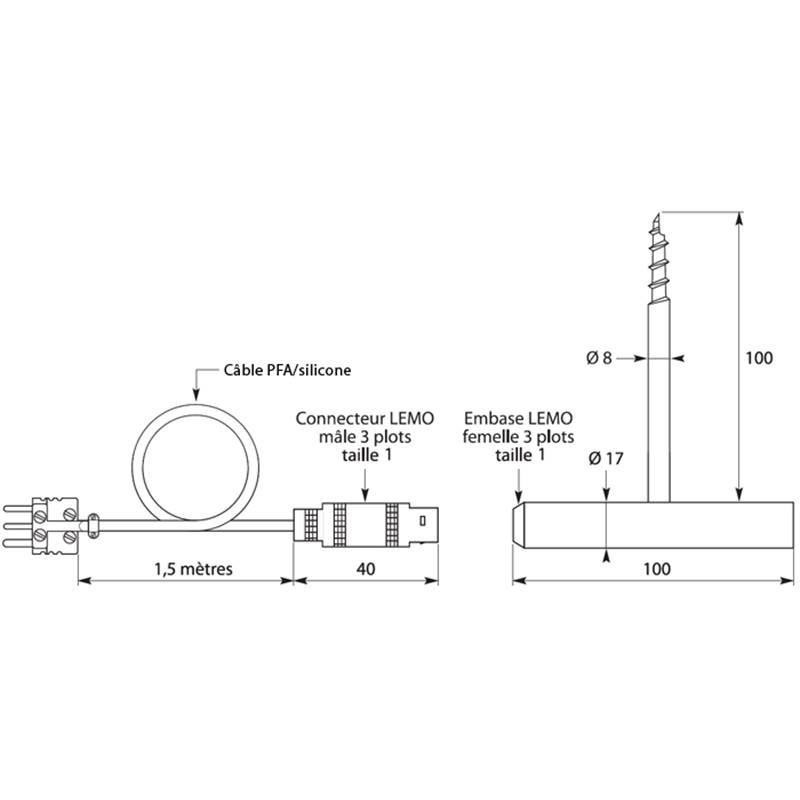 Sonde Pt100x1 de pénétration à visser pour thermomètre num. portable