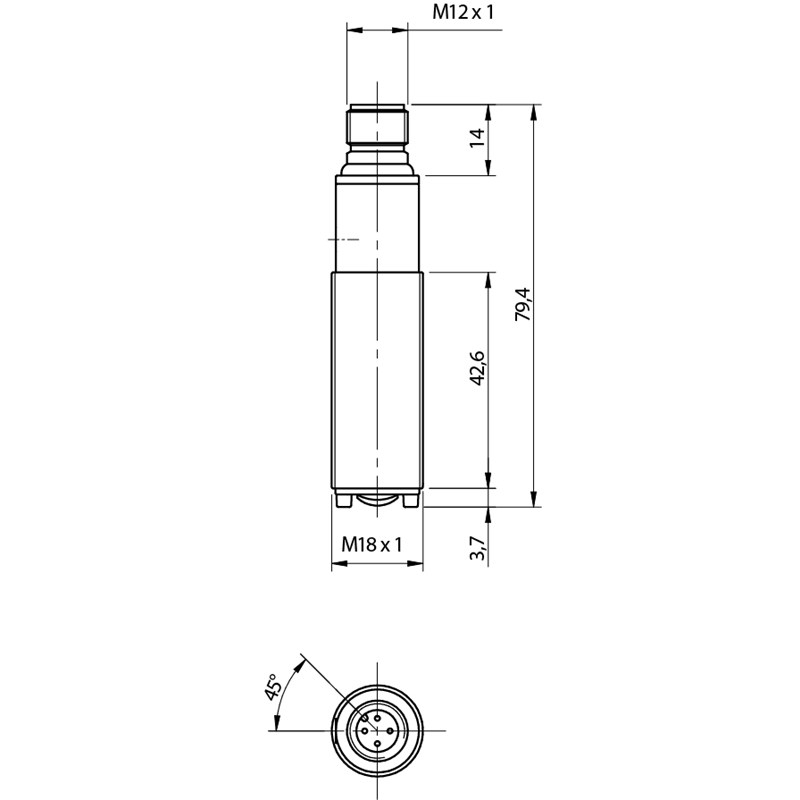 • Format: Cylindrique fileté, M18 x 1, faisceau axial