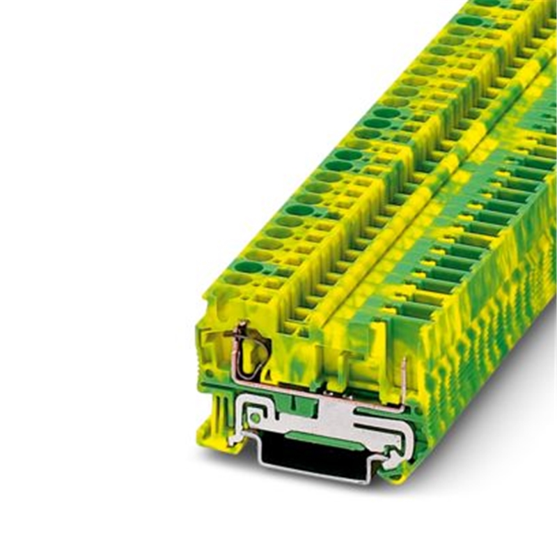 Bloc de jonction pour conducteur de protection, raccordement par tension à ressort/enfichable, sections : 0,08 mm² - 6 mm², largeur : 6,2 mm, couleur : vert/jaune, type de montage : NS 35/7,5, NS 35/15