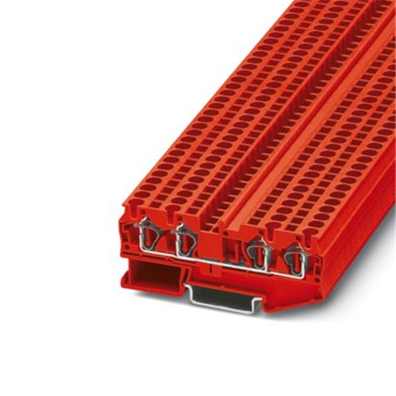 Bloc de jonction simple, raccordement à ressort, nombre de connexions : 4, sections : 0,08 mm² - 6 mm², largeur : 6,2 mm, coloris : rouge, type de montage : NS 35/7,5, NS 35/15