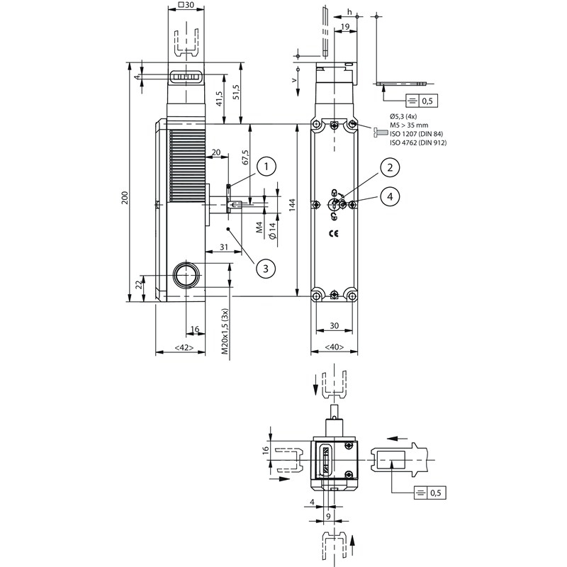 Interrupteur de sécurité STP; Mode d’interverrouillage: Verrouillage hors tension ; Déverrouillage: Manuel ; Nombre de contacts à ouverture position de porte: 1; Nombre de contacts à fermeture contrôle d’interverrouillage: 1; Nombre de contacts à ouverture positive contrôle d’interverrouillage: 2 ; Tension de service de l’électroaimant: AC/DC 24 V +10%, -15%; Principe de commutation: Élément de contact à action dépendante ; Materiau des contacts: Alliage argent, doré par soufflage; Déverrouillage auxiliaire: À l’aide d’un outil; Force de retrait: 30 N; Force d’actionnement: 35 N; Force de retenue Fmax: 2500 N; Raccordement: 3 x M20 x 1,5; Matériau du boîtier: Thermoplastique renforcé avec des fibres de verre; Indice de protection: IP67; Température ambiante: -20 ... +55 °C; Série: STP