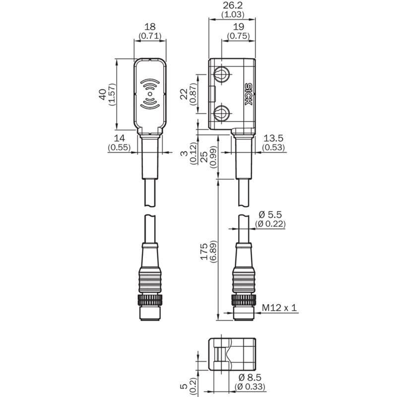 Interrupteur de sécurité sans contact; Pièce du système: Capteur et actionneur; Forme de l’actionneur: Plat; Codage: Permanent; Distance d'activation sécurisée Sao: 14 mm; Raccordement: Câble avec connecteur mâle M12, 5 pôles; Longueur du câble: 0,2 m; Connexion en série sûre: Avec Flexi Loop (avec diagnostic); Contact auxiliaire (AUX): 1 (Comportement de commutation de sens opposé aux OSSD); Série: STR1