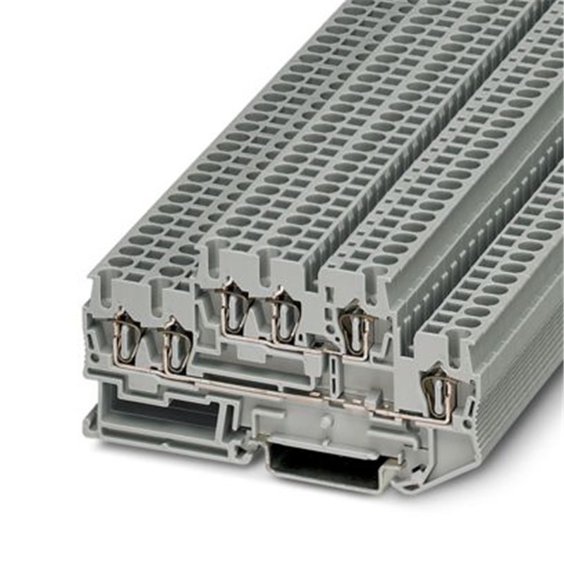 Bloc de jonction à 2 étages, sections : 0,08 mm² - 4 mm², raccordement à ressort, largeur : 5,2 mm, couleur : gris, type de montage : NS 35/7,5, NS 35/15