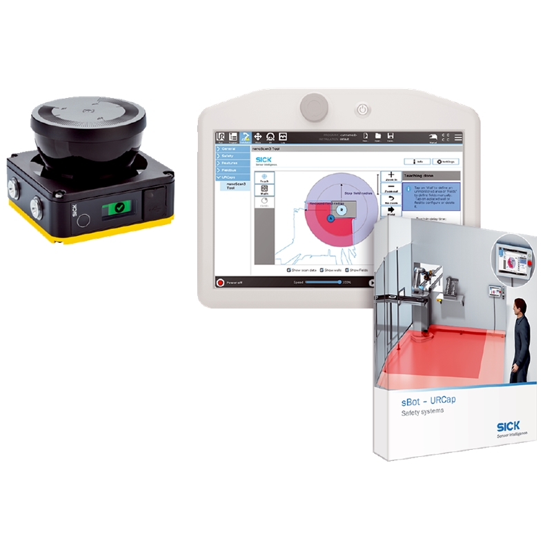 Systèmes de sécurité, Safe Robotics Area Protection, SYS/BOT-URSP4ESUA01NS3, Modèle: sBot Speed – URCap, Type de produit: Système (matériel et logiciel), Commande de robot: Universal Robots: UR3e, UR5e, UR10e, UR16e, UR20 und UR30, Contrôle