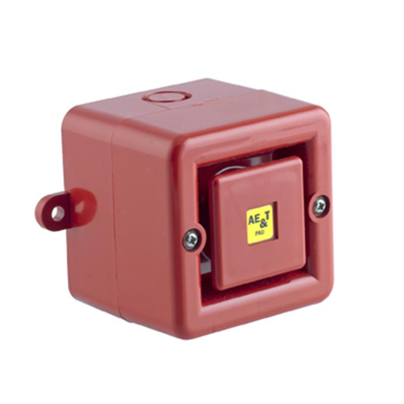 Sirène électronique compacte - 100 dB à 1 m; Puissance sonore: 104 dB - (nominale: 100 dB); Nbre de sons: 32; Nbre de sons à distance: 3 sons différents au moyen de liaisons sur un bornier; Réglage du son: Oui, par potentiomètre; Choix des sons: 32 sons sélectionnables par micro-interrupteur; Tension d'alimentation: 115 Vac; Indice de protection: IP66; Dimensions: 86 x 86 x 76 mm; Entrée de câble: 3x M20 - 1 entrées déjà percée, 2 entrées pré-percées; Section de câble: Câbles de 0,5 à 1,5 mm²; Matériau du boîtier: ABS auto-extinguible - rouge; Synchronisation: Oui (en montage parallèle)