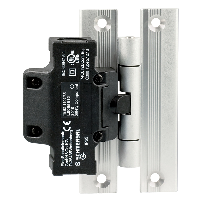 Interrupteur de sécurité sur charnières; Utilisation: Convient pour montage aux profilés: 40 mm; Charnière de fixation: Oui; Charnière supplémentaire: Oui; Nombre de contacts de sécurité: 3; Entrées de câble: 2 conduits M 20 x 1.5; Dimensions: 111,5 mm x 92 mm x 36 mm; Matériau du boîtier: Plastique; Matériau des contacts, électriques: Argent; Matériau de la charnière: Aluminium; Etanchéité: IP65; Température ambiante: -25 °C ... +65 °C; Certificats: IFA, cULus, CCC, EAC; Remarque: L'angle d'ouverture réglé en usine est de 4°; Série: TESZ