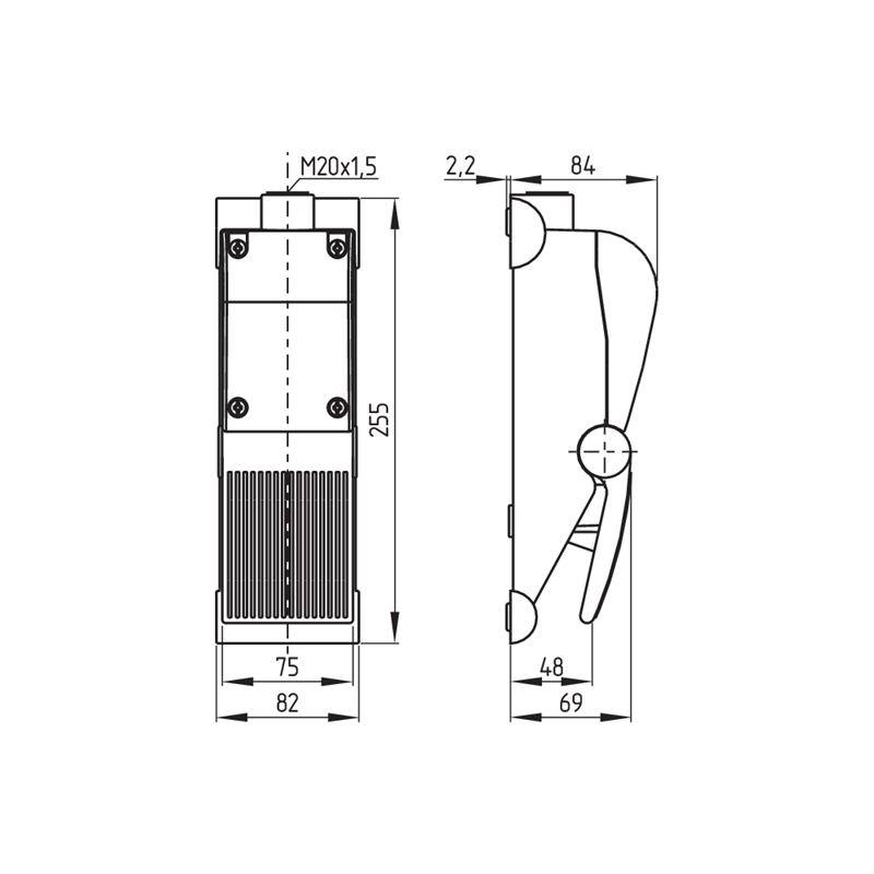 Pédale de sécurité simple avec capot 2NO+2NF rupture lente, IP65