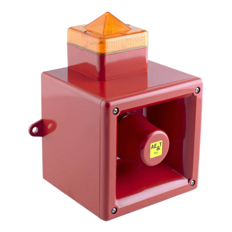 Combiné 105dB Feu FLASH Orange 5 Joules; Tension d'alimentation: 115VAC; Volume sonore: 105dB à 1m, 32 Sons 3 pilotable à distance; Couleur de l'optique: Rouge; Forme du signal: Feu Flash; Degré de protection: IP66; Entrée: 2 x M20 de 0.5 à 1.5 mm²; Efficacité sonore: sirène audible jusqu’à 60 m; Synchronisation automatique du flash à 1 Hz (60 flashes/min)