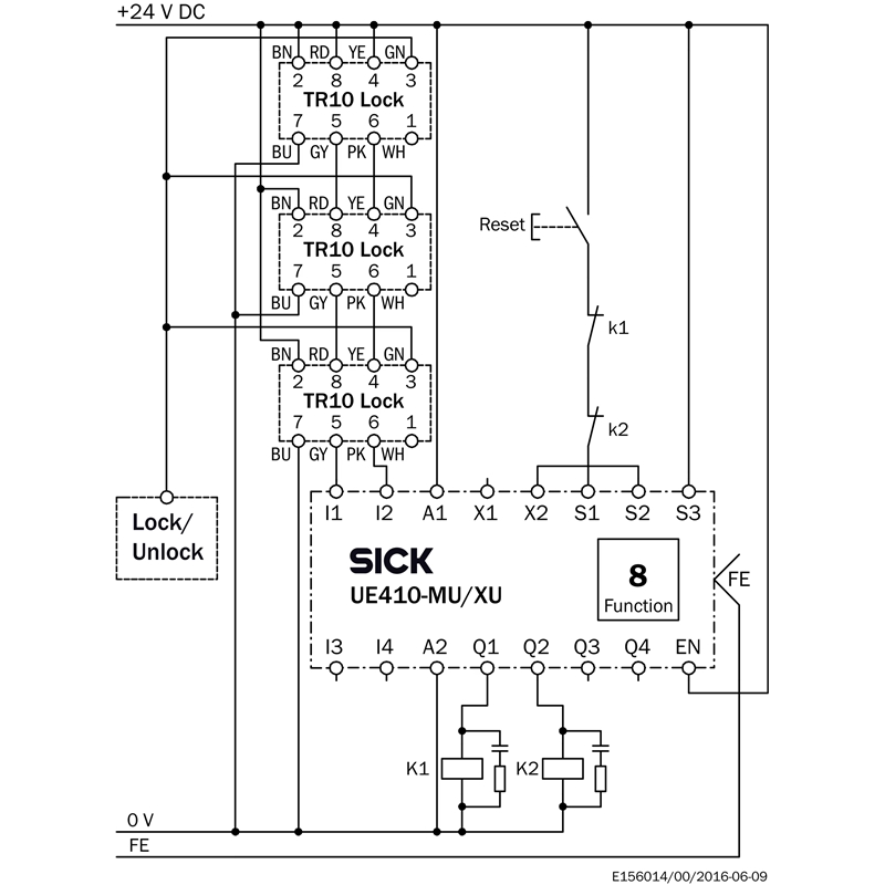 L’interrupteur de sécurité à interverrouillage TR10 Lock allie le meilleur des technologies éprouvées : la protection élevée anti-manipulation de la technologie RFID pour la surveillance de l’actionneur et la force et la fiabilité élevées de l’interverrouillage mécanique. Les sorties à semi-conducteur auto-surveillées (sorties de communication) du capteur sont cascadables et avec PL e (EN ISO 13849) elles assurent un degré de sécurité élevé - pour la surveillance de la porte autant que pour la surveillance d'électroaimant. Pour plus de flexibilité dans l’application, deux codages sont disponibles. Les capteurs à codage universel acceptent tous les actionneurs adaptés, les capteurs à codage unique n’autorisent que l’actionneur initié auparavant. La bobine d’induction bistable ne consomme que peu d’électricité et ne produit aucune chaleur à l’état verrouillé ou déverrouillé.