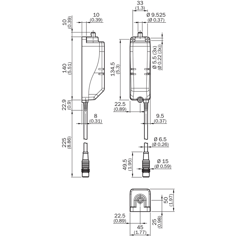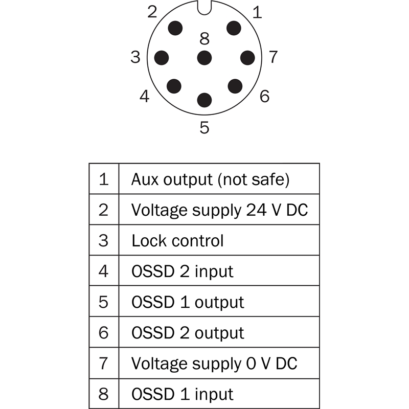 • Raccordement: Câble avec connecteur mâle M12, 8 pôles